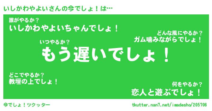 | ヘコむあだ名 | 『いしにー』『酢こんぶ』『いしお』 |