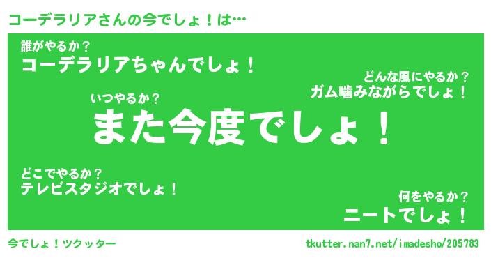 | 恥ずかしいあだ名 | 『プリティーコーデラリア』『コーっちょ』 |