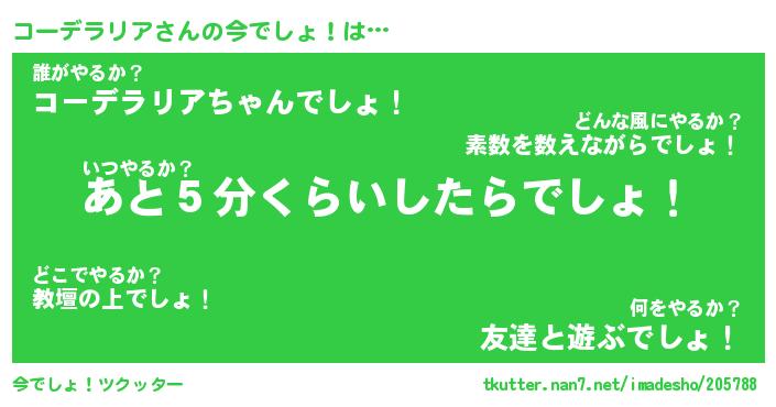 | ヒーロー風カッコイイあだ名 | 『スーパーコーデラリア』『天弓騎士コー』 |