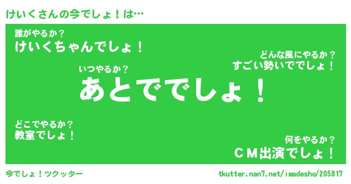 | 意味不明あだ名 | 『ペロリンけいく』『けいくフォーエバー』 |