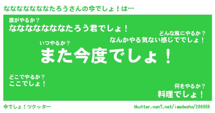 料理風あだ名 | 『ネギたっぷりなななななななたろうの南蛮漬け』 |