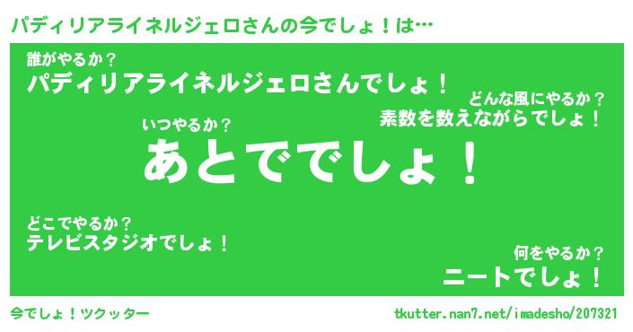 | ツイッター | パディリアライネルジェロさんのツイッターID『dendenmushi_star』 |