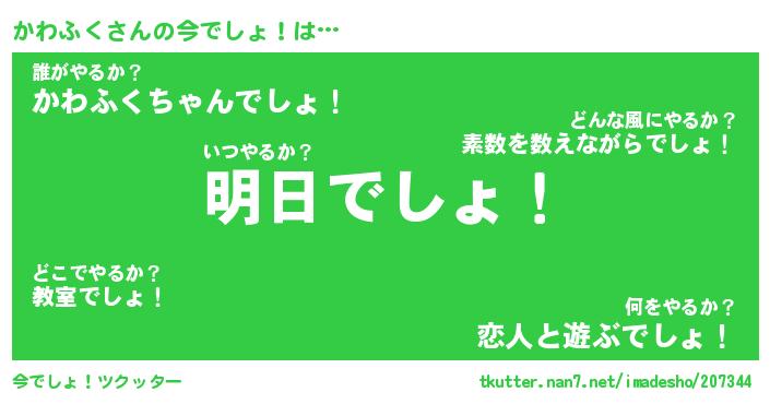 | ヒーロー風カッコイイあだ名 | 『スーパーカワフク』『幻影騎士カワ』 |