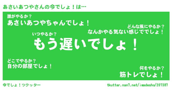 肩書あだ名 | 『あさいあつや社長』『あさいあつや班長』 |