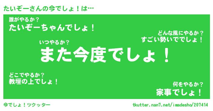 | 意味不明あだ名 | 『ペロリンたいぞー』『永久保存たいぞー』 |