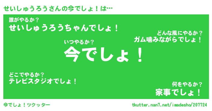 | 恥ずかしいあだ名 | 『プリティーせいしゅうろう』『せいちん』 |