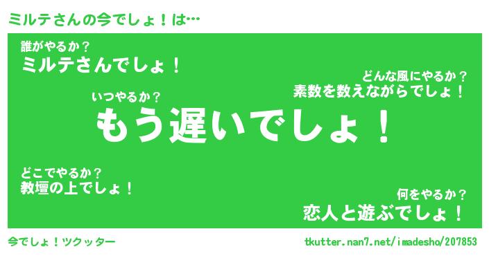 | 意味不明あだ名 | 『ペロリンミルテ』『ミルテフォーエバー』 |