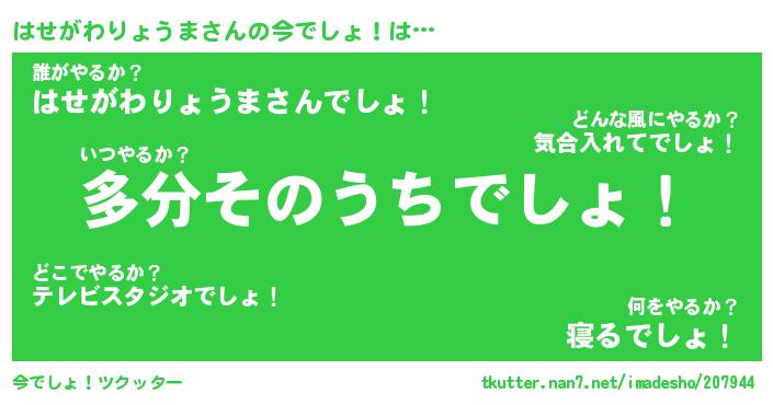 | ヘコむあだ名 | 『はせにゅー』『つくし』『はせっぺ』 |