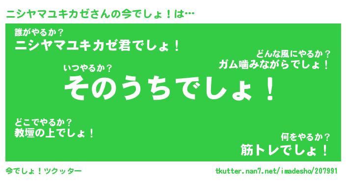 | 胡散臭い通販商品みたいなあだ名 | 『必ず成功するブレスレット…その名も「ニシヤマユキカゼ」』 |