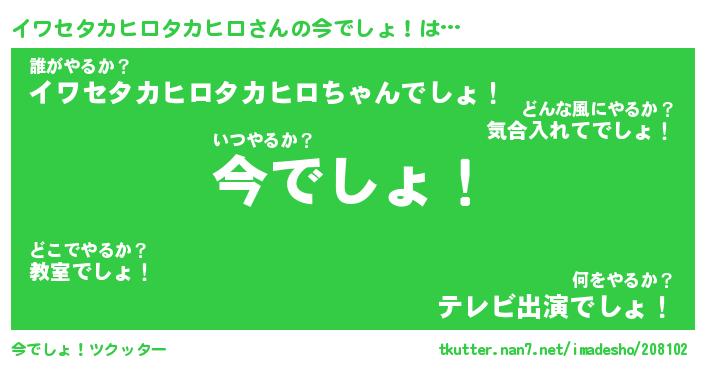 | 肩書あだ名 | 『イワセタカヒロタカヒロCEO』 |