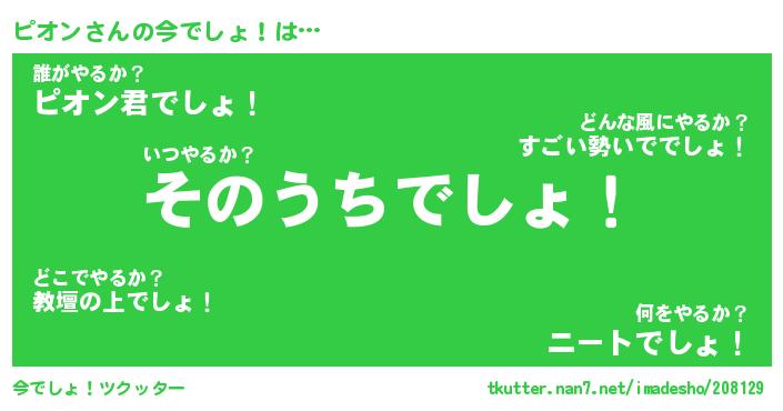 | ヘコむあだ名 | 『ピオにー』『なまこ酢』『ピオっ子』 |