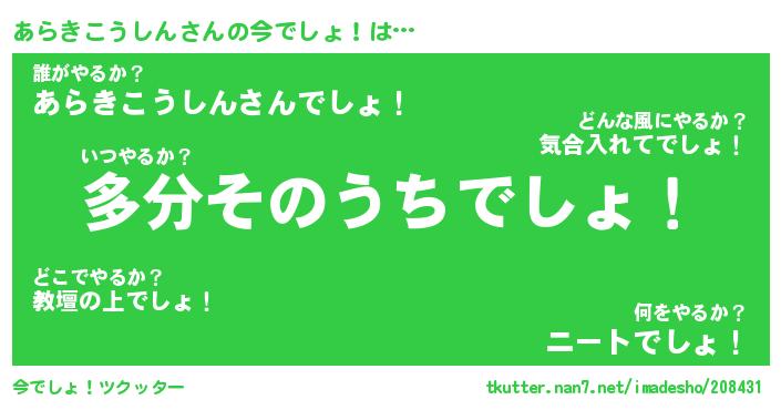 | 女子向けラノベタイトル風あだ名 | 『あらきこうしん姫と円卓の騎士』 |