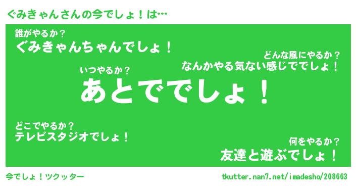 | ヘコむあだ名 | 『ぐみにー』『酢こんぶ』『ぐみお』 |