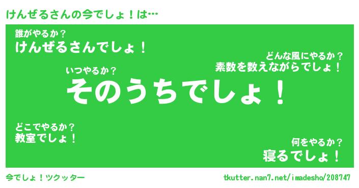 | 意味不明あだ名 | 『ペロリンけんぜる』『永久保存けんぜる』 |