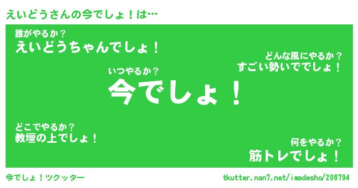 | 欧米人風あだ名 | 『マイケルえいどう』『ウサインえいどう』 |