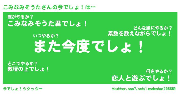 | ヘコむあだ名 | 『こみにー』『なまこ酢』『こみっぺ』 |