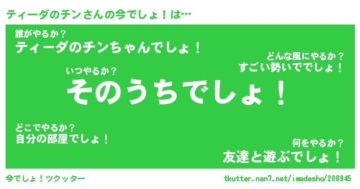 | 男性向けラノベタイトル風あだ名 | 『ティーダのチンの憂鬱』 |