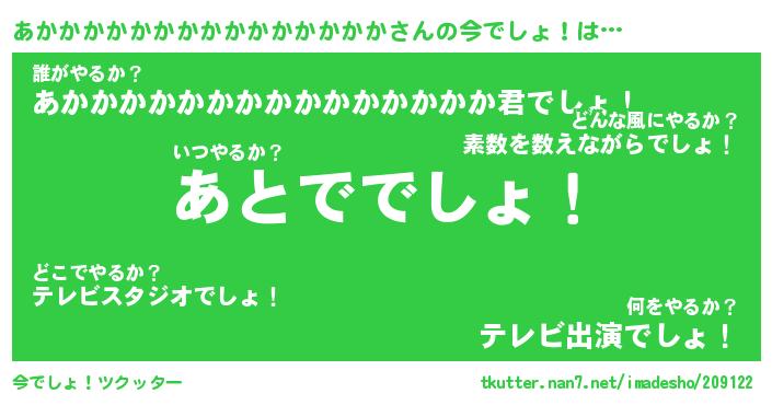 | 料理風あだ名 | 『節約★あかかかかかかかかかかかかかかかと油揚げの玉子丼』 |