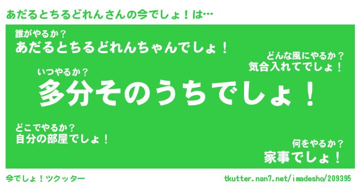 | 料理風あだ名 | 『節約★あだるとちるどれんと油揚げの玉子丼』 |