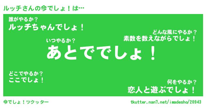 | 意味不明あだ名 | 『ペロリンルッチ』『ルッチフォーエバー』 |