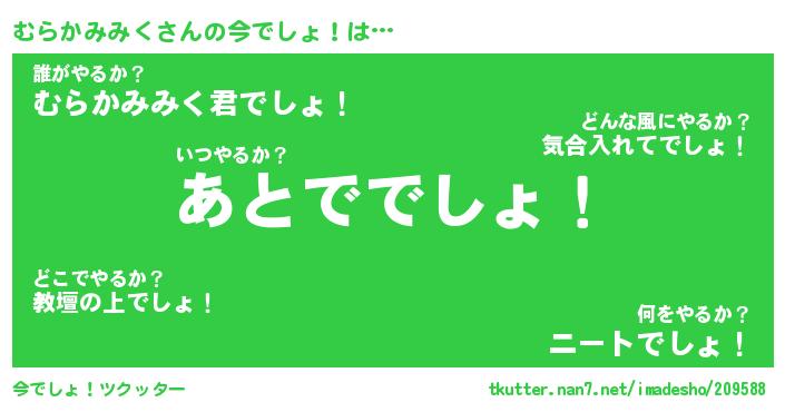 | 伝説のあだ名 | 『不死鳥のスナイパーむらかみみく』 |