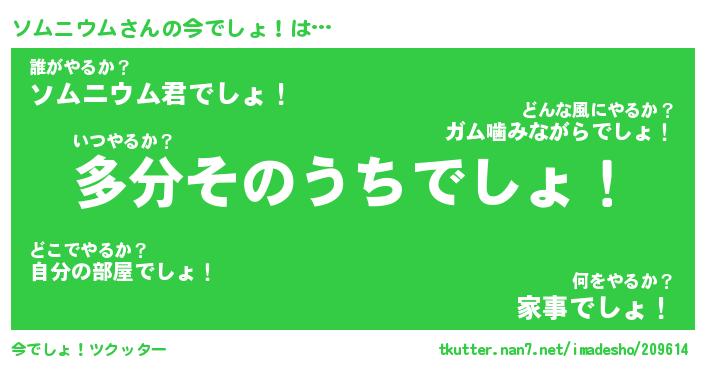 | 料理風あだ名 | 『節約★ソムニウムと油揚げの玉子丼』 |