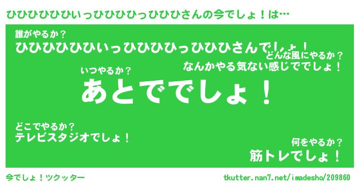 | ヘコむあだ名 | 『ひひにゅー』『牛乳』『ひひ太郎』 |