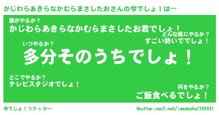| 肩書あだ名 | 『かじわらあきらなかむらまさしたお御曹司』 |