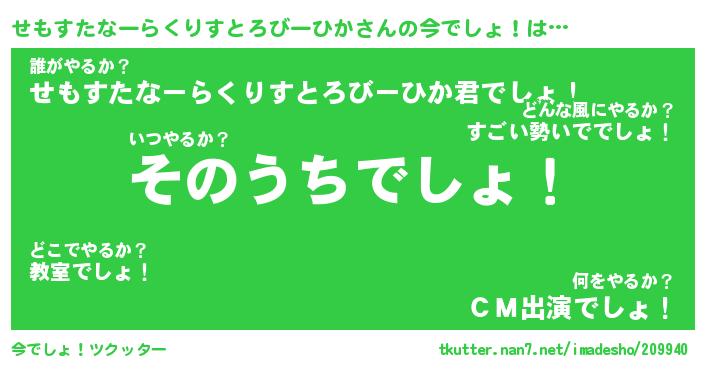 | ヘコむあだ名 | 『せもにー』『豆乳』『せもっ子』 |