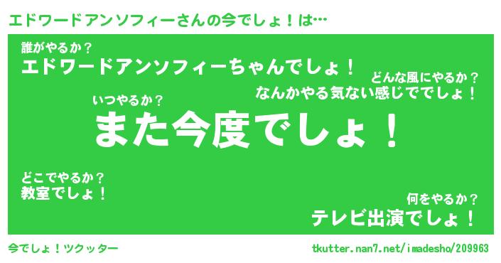 | ツイッター | エドワードアンソフィーさんのツイッターID『fukuyoka_man』 |