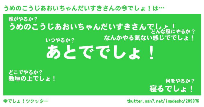 | 恥ずかしいあだ名 | 『プリティーうめのこうじあおいちゃんだいすき』 |
