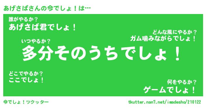 | ファンタジー風あだ名 | 『アゲフェル』『エターナルアゲサバー』 |