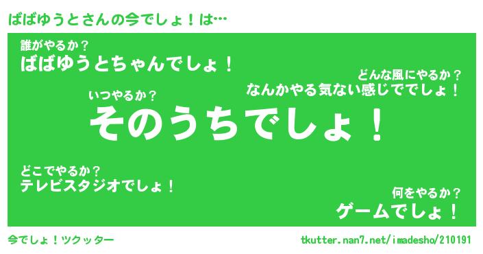 | 伝説のあだ名 | 『伝説のスナイパーばばゆうと』 |
