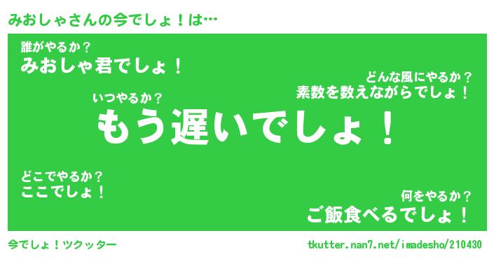 | 肩書あだ名 | 『みおしゃ社長』『みおしゃ総理大臣』 |