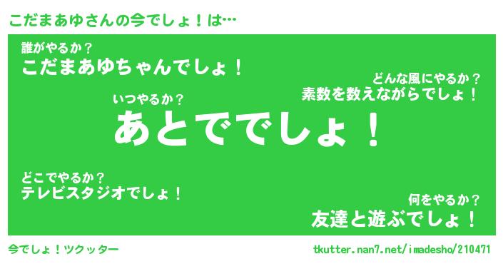 | 肩書あだ名 | 『こだまあゆ御曹司』『こだまあゆ大統領』 |