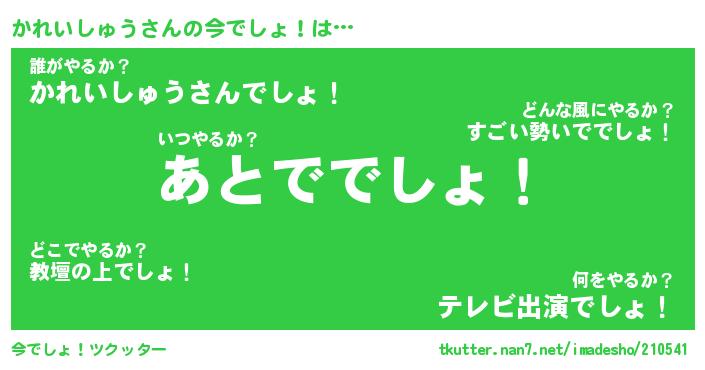 | 肩書あだ名 | 『かれいしゅうCEO』『かれいしゅう担任』 |