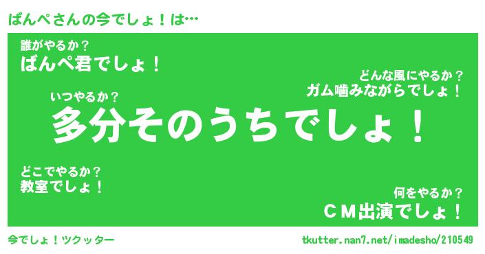| 意味不明あだ名 | 『ペロリンばんぺ』『ばんぺフォーエバー』 |
