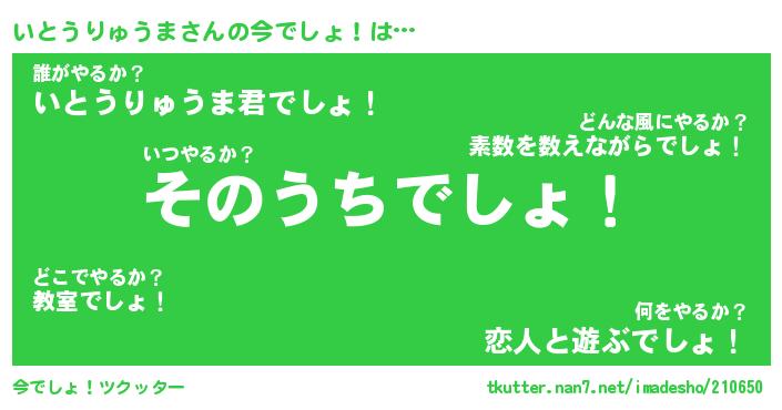 | 番長 | いとうりゅうま、またの名を・・・!『なんちゃっていとうりゅうまちゃん』 |