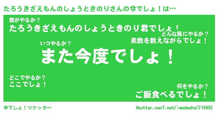 | 番長 | たろうきざえもんのしょうときのり、またの名を・・・!『実はそうでもないたろうきざえもんのしょうときのりちん』 |