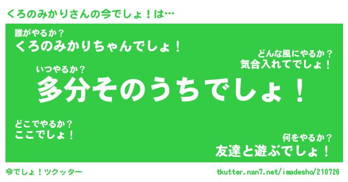 | 男性向けラノベタイトル風あだ名 | 『くろのみかりの憂鬱』 |