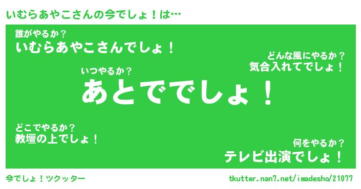 | 伝説のあだ名 | 『不死鳥のスナイパーいむらあやこ』 |