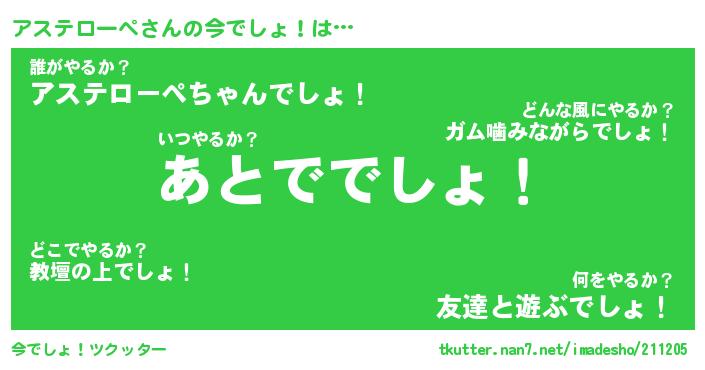 | 料理風あだ名 | 『節約★アステローペと油揚げの玉子丼』 |