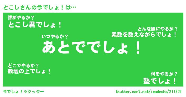 | ピコ太郎風あだ名 | 『トコ史郎』『ピト太郎』『トコ次郎』 |
