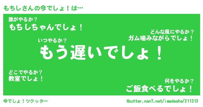 | ヒーロー風カッコイイあだ名 | 『スーパーモチシ』『ウルトラもちしマン』 |