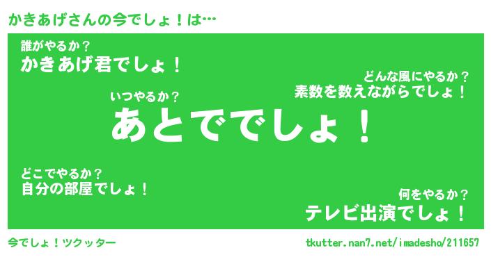 | ピコ太郎風あだ名 | 『カコ八郎』『ピカ三郎』『カキ十郎』 |