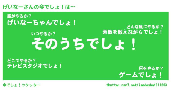| 肩書あだ名 | 『げいなー御曹司』『げいなー国家主席』 |