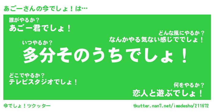 | 意味不明あだ名 | 『ペロリンあごー』『あごーフォーエバー』 |