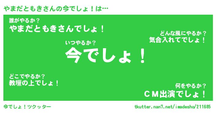 | 肩書あだ名 | 『やまだともき店長』『やまだともき団長』 |