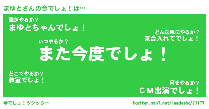 | ヘコむあだ名 | 『まゆもー』『酢こんぶ』『まゆを』 |