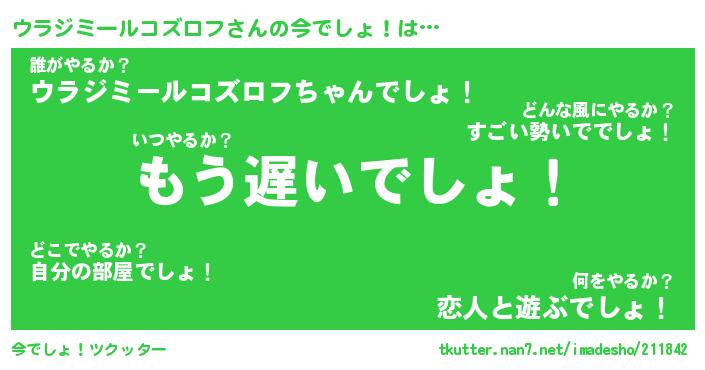 | 男性向けラノベタイトル風あだ名 | 『ウラジミールコズロフの憂鬱』 |